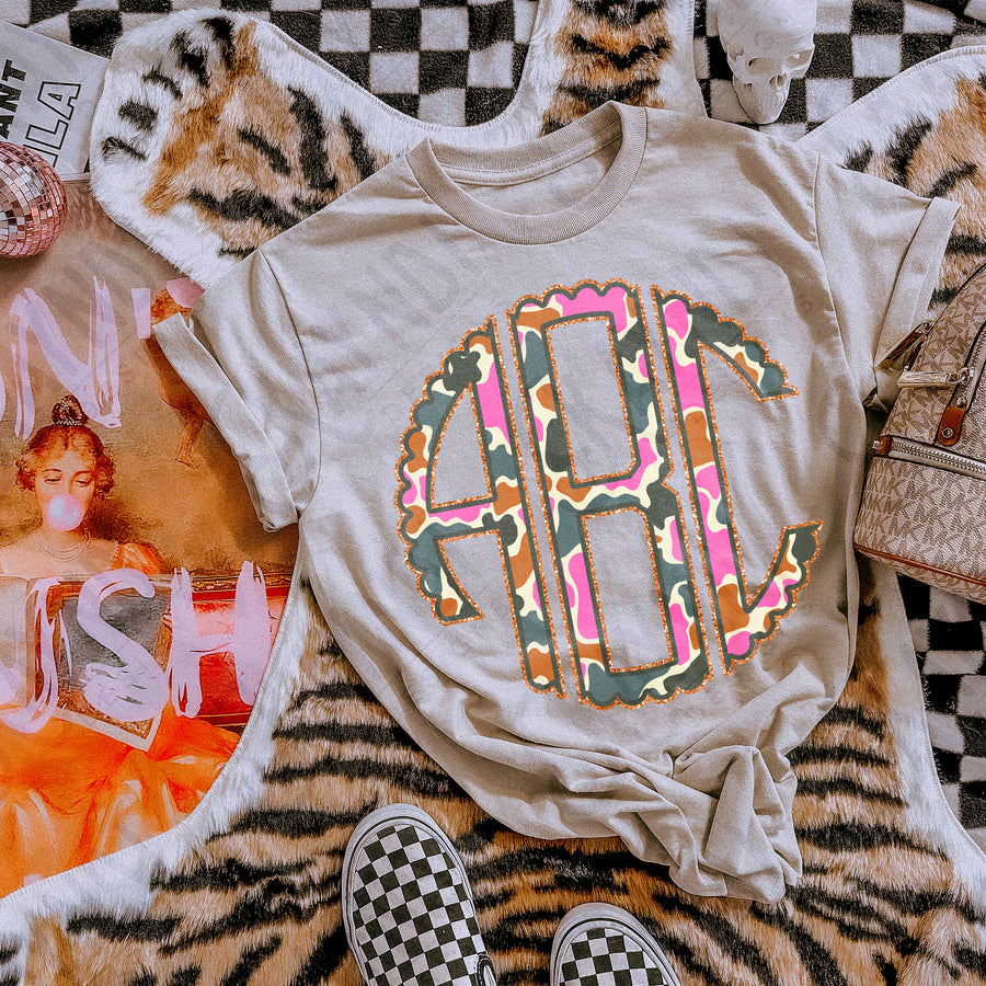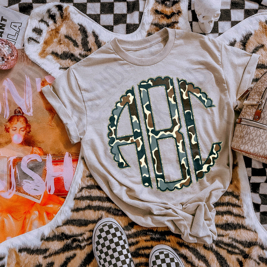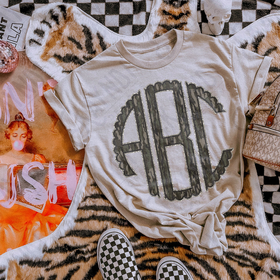 WOODLAND CAMO LIGHT GLITTER MONOGRAM