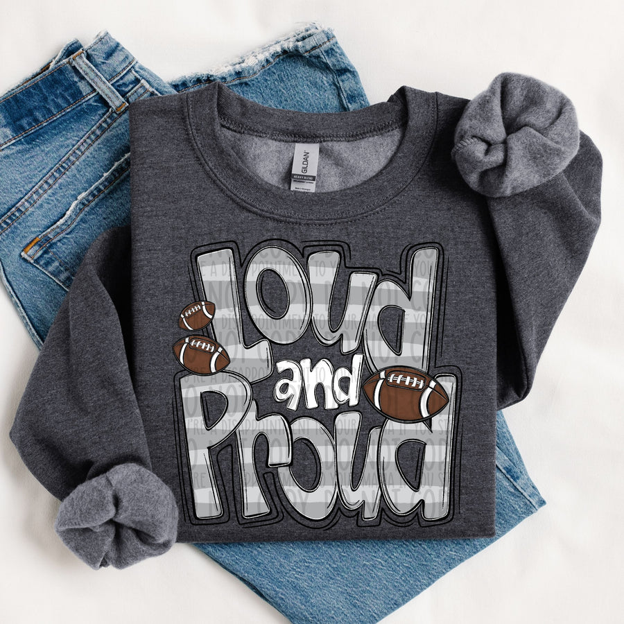 LOUD AND PROUD DOODLE FOOTBALL DK GRAY