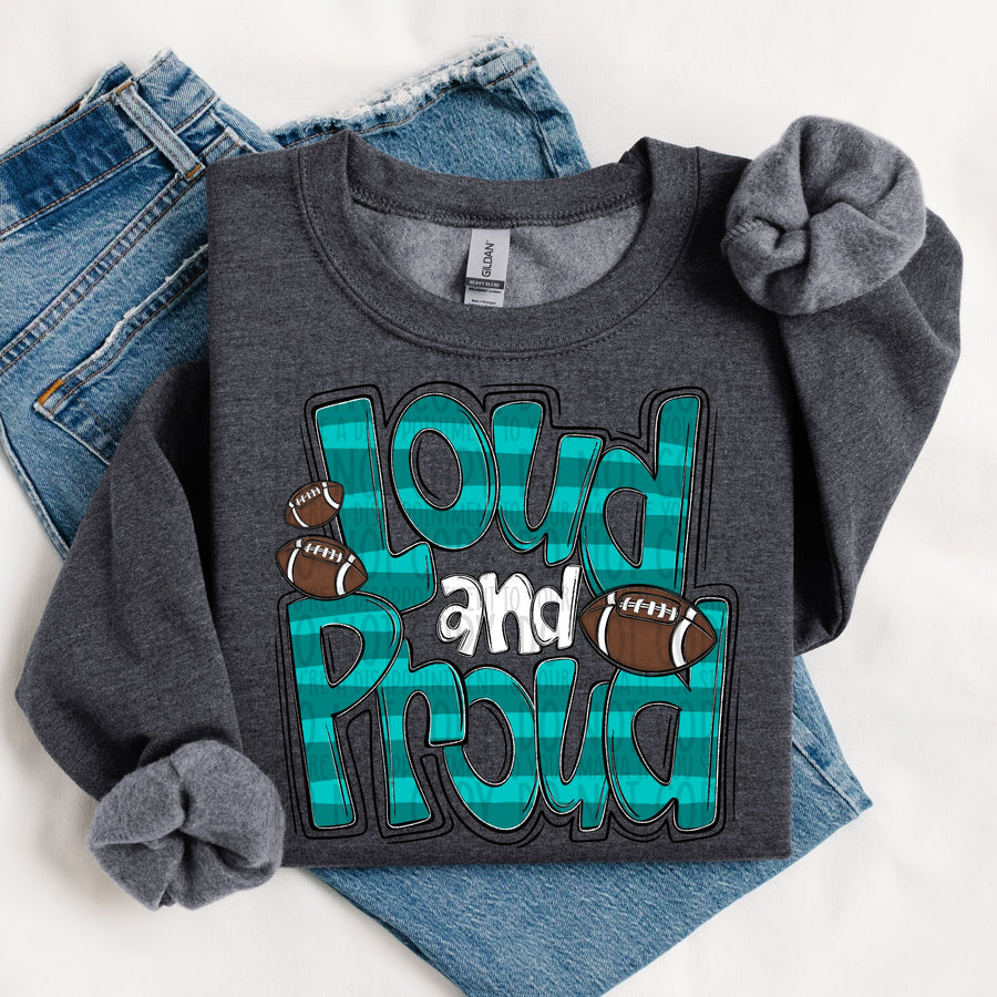 LOUD AND PROUD DOODLE FOOTBALL TEAL